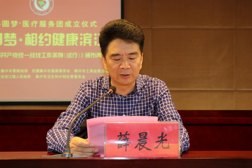 薛晨光主席主持活動并宣布“同心圓夢.醫療服務團”成立,劉輝常委向服務團代表進行了授旗。“同心圓夢?醫療服務團”是由民建泰興市基層委員會著力打造的創新服務發展、積極奉獻社會的重要品牌,本著“精研仁術、服務社會”的宗旨,匯集了民建泰興的醫療精英,充分發揮民主黨派專業人士知識優勢和業務特長,廣泛開展社會醫療服務活動。